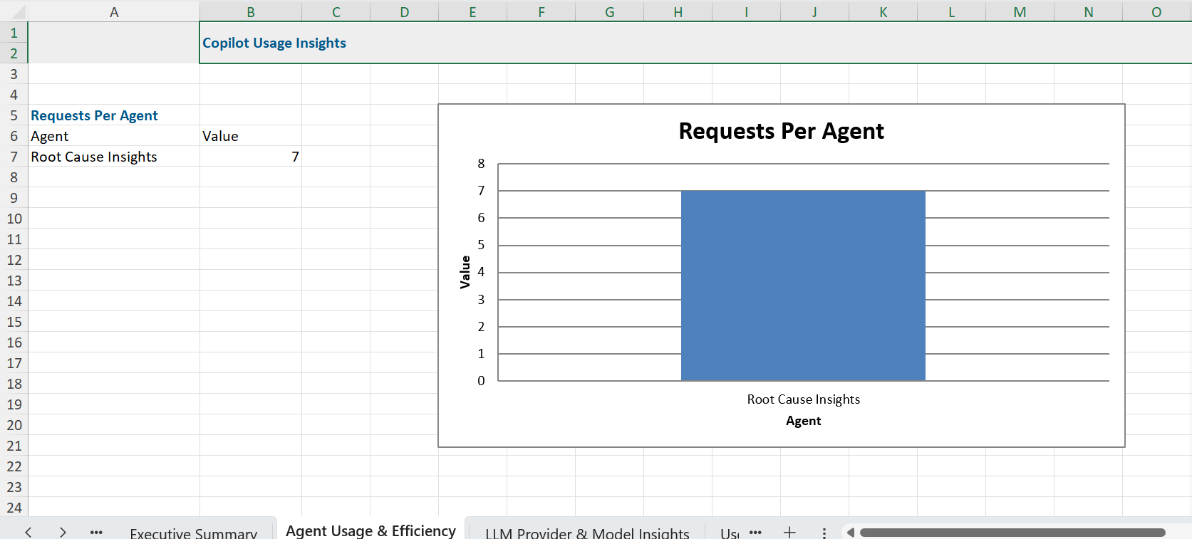 - Agent Usage and Efficiency: This section provides information on the usage per agent.